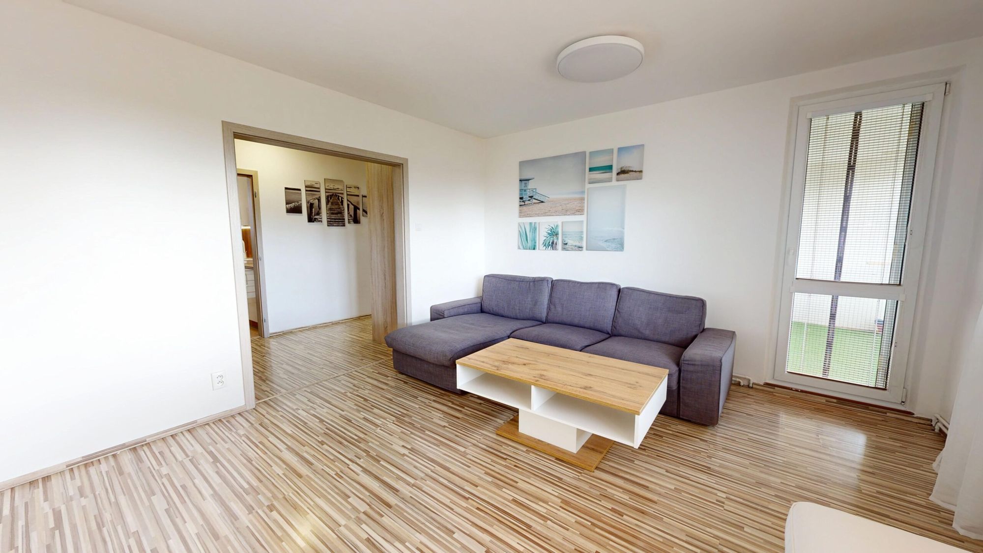 priestranná obývacia izba so vstupom na lodžiu