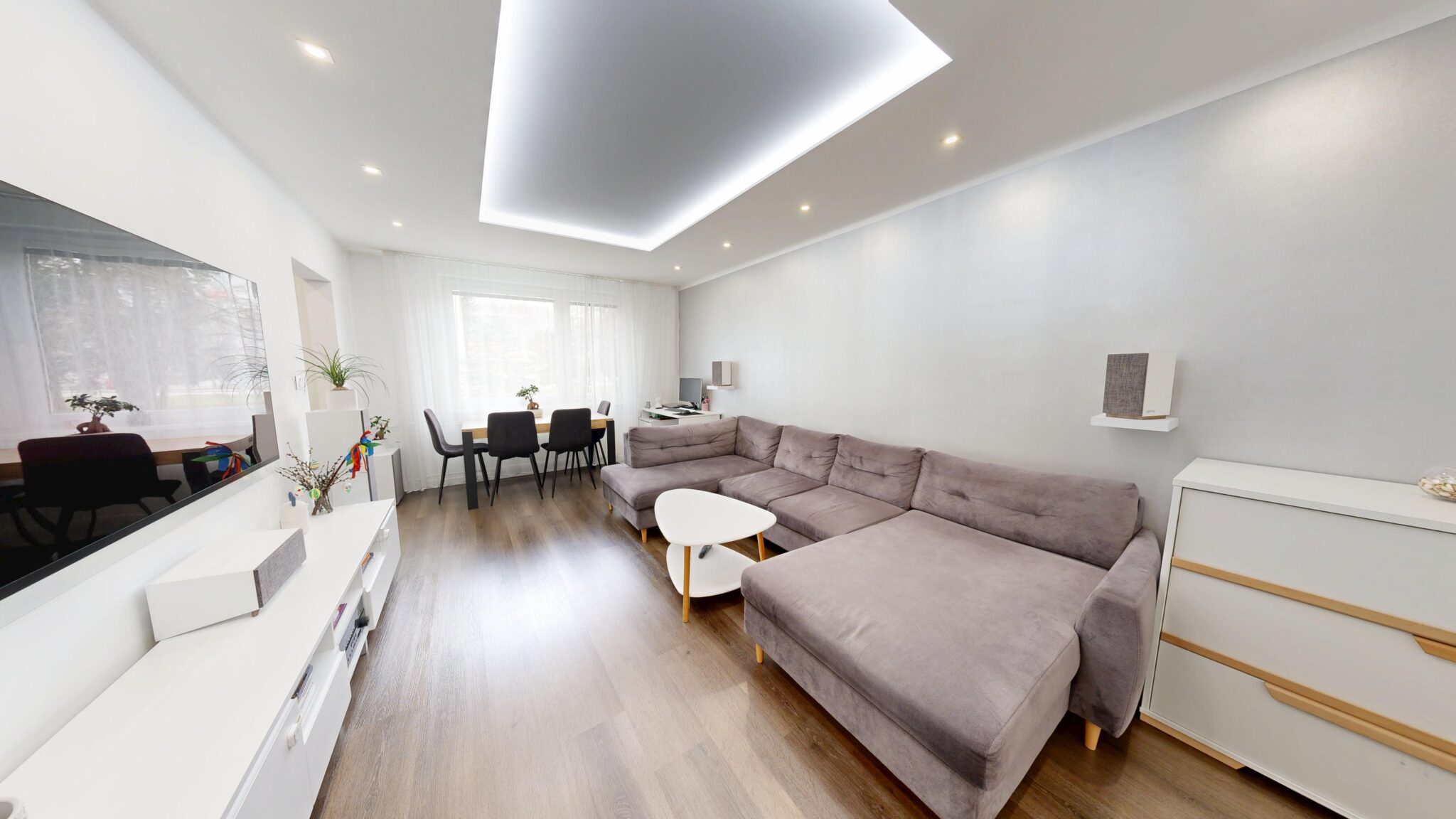 Byt disponuje praktickým a výborne riešeným dispozičným usporiadaním, ktoré ponúka dostatok priestoru pre komfortné rodinné bývanie. Súčasťou bytu sú tri samostatné izby, kuchyňa, kúpeľňa, samostatná toaleta, vstupná chodba, komora, pivnica, balkón a lodžia. Dispozícia bytu pôsobí vzdušne, funkčne a zároveň poskytuje dostatok úložného priestoru.
