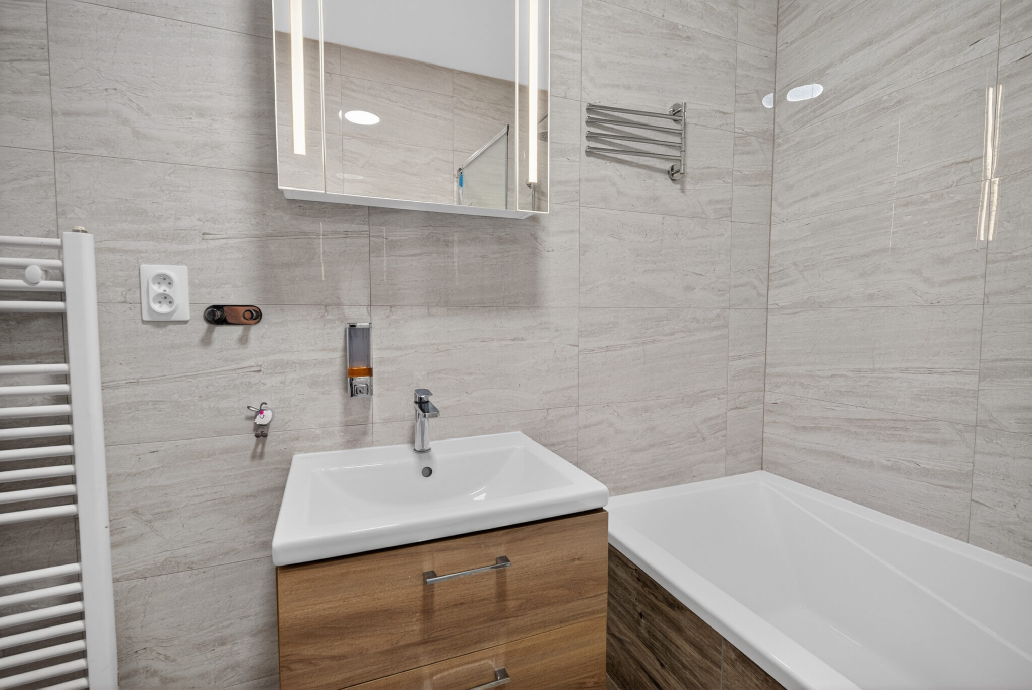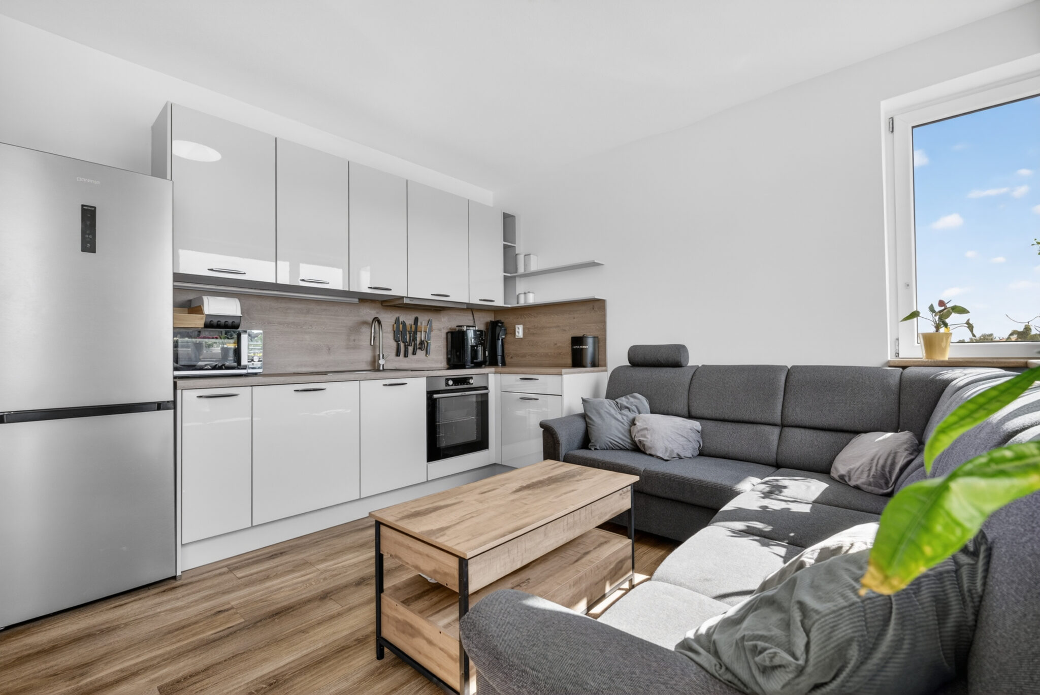 Dominantou bytu je priestranná obývacia izba s výstupom na slnečnú terasu. Samostatná spálňa ponúka dostatok súkromia a vďaka rohovým oknám aj pekný výhľad bez priameho kontaktu so susedmi. Kuchyňa je vybavená novou kuchynskou linkou a spotrebičmi. Kúpeľňa je moderne riešená so sprchovým kútom.