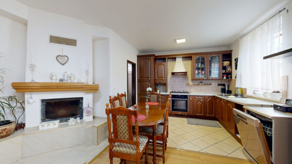 Andel&Zachar ponúka na predaj veľký 2-poschodový rodinný dom s úžitkovou plochou 144m2 v tichej slepej uličke obce Ružindol. Dom bol postavený z ytongu, je vykurovaný prostredníctvom plynového kotla s radiátormi a dodatočné kúrenie zabezpečuje krb s prieduchmi v obytných izbách. Samozrejmosťou sú všetky inžinierske siete na pozemku a to obecná voda, elektrina, plyn, kanalizácia a studňa. Pozemok je celý oplotený a disponuje elektrickou bránou s prístupom na pozemok pričom je možnosť prerobiť jednu z izieb na garáž. Bonusom záhrady je veľký záhradný domček. Dom je ihneď voľný k nasťahovaniu.